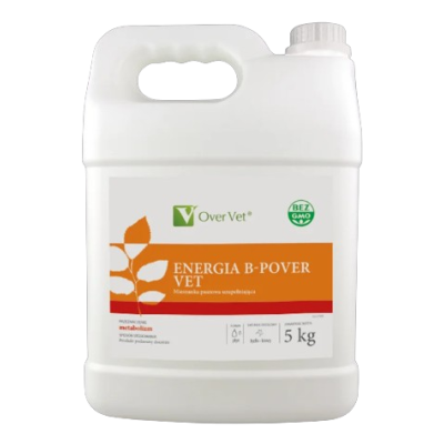 ENERGIA B-POVER VET jest źródłem łatwo przyswajalnych składników energetycznych. Stosowanie produktu u krów mlecznych pozwala na zmniejszenie skutków ujemnego bilansu energetycznego. Kompleks witamin z grupy B aktywizuje przemiany energetyczne. ENERGIA B-POVER VET ma słodki, atrakcyjny smak i zapach z nutą pomarańczy, co wpływa na jej apetyczność i chętne pobieranie przez krowy.