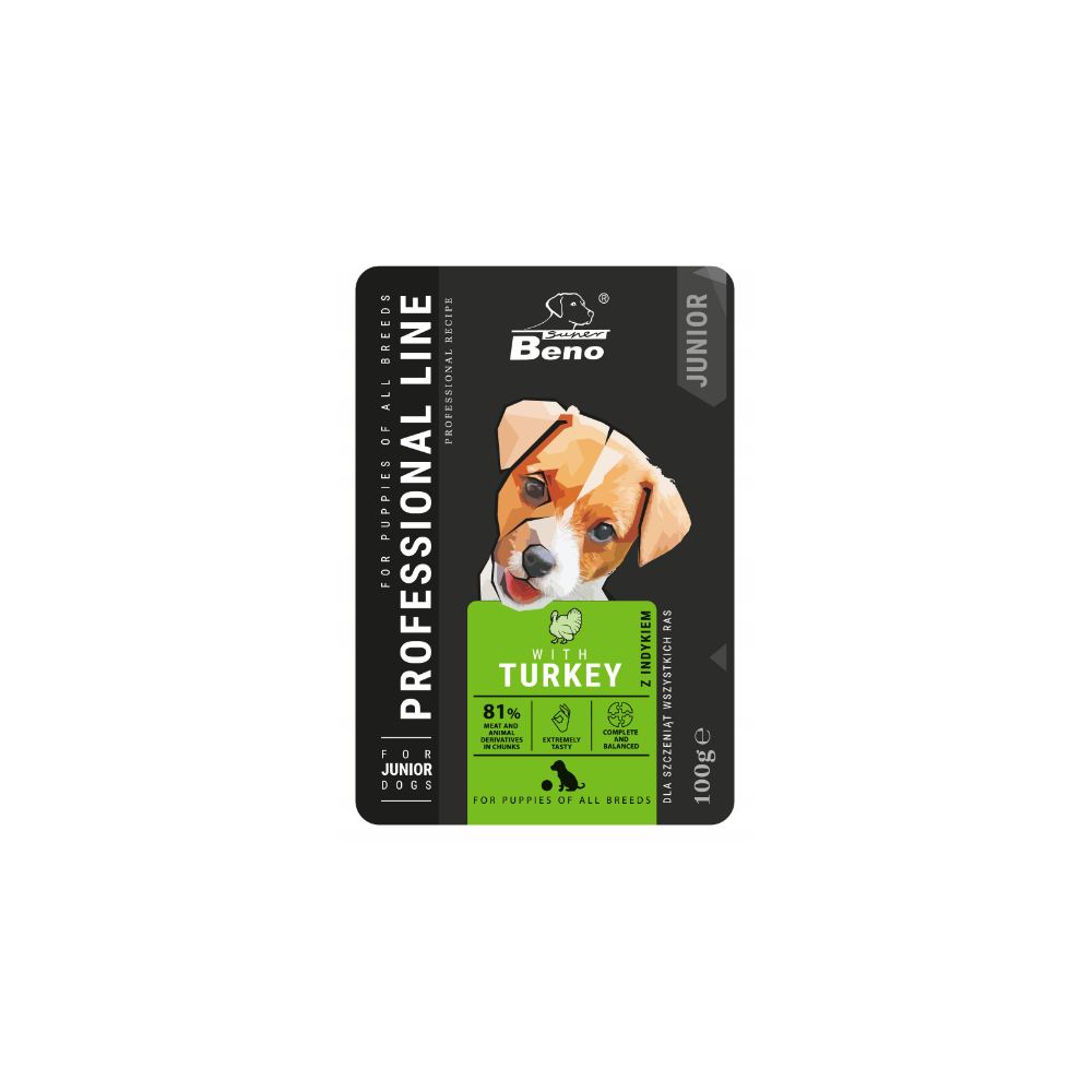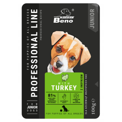 SUPER BENO Saszetka dla Szczeniąt Indyk 100g