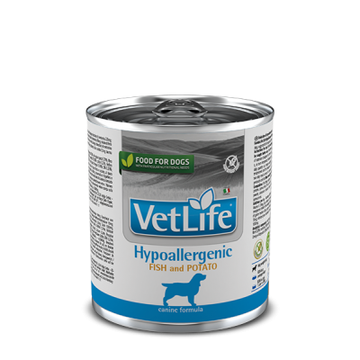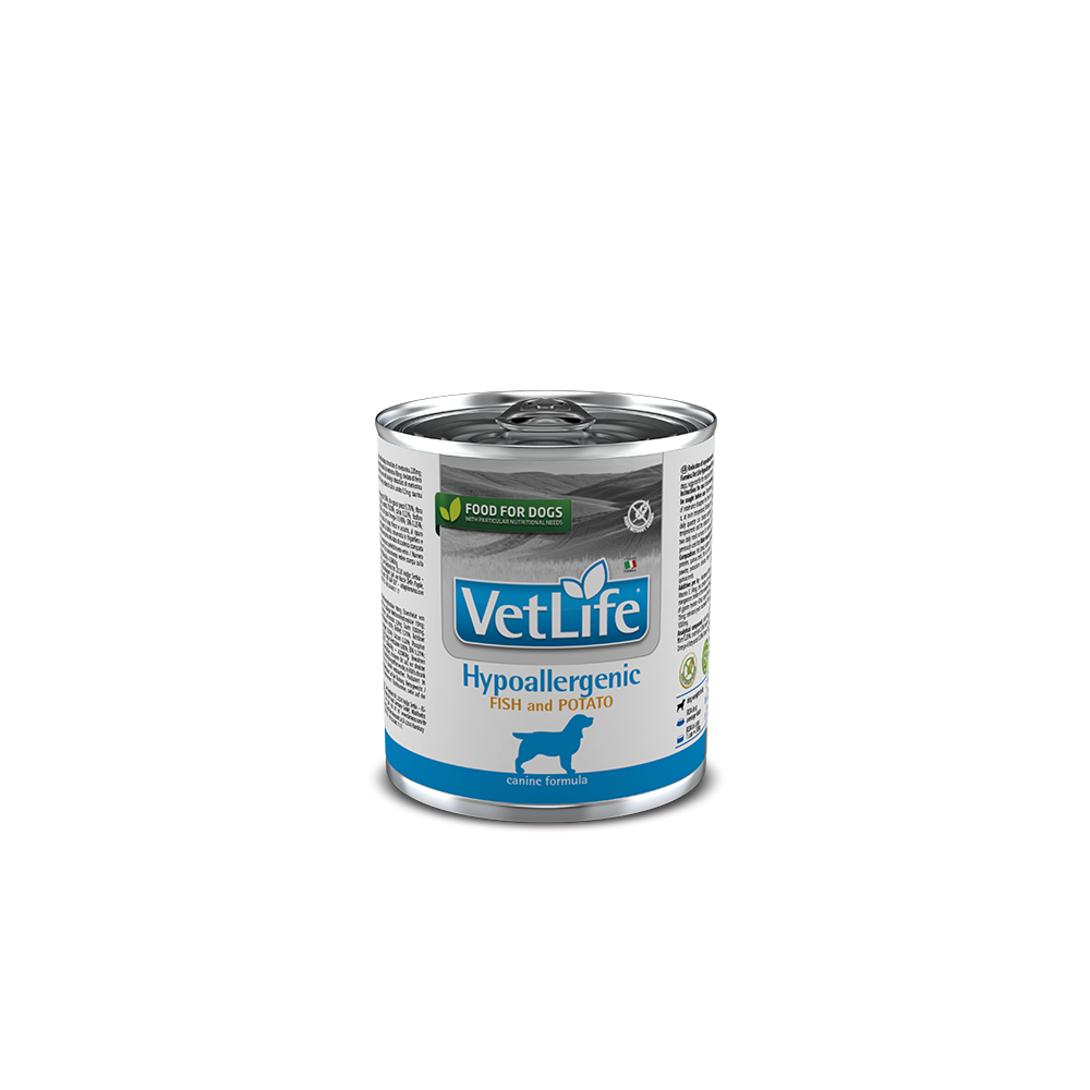 Farmina Vet Life Hypoallergenic Fish & Potato to pełnoporcjowa dietetyczna karma dla dorosłych psów stworzona w celu zmniejszania nietolerancji na składniki odżywcze, a także to wspomagania leczenia skóry, oczu, uszu i gruczołów okołoodbytowych.