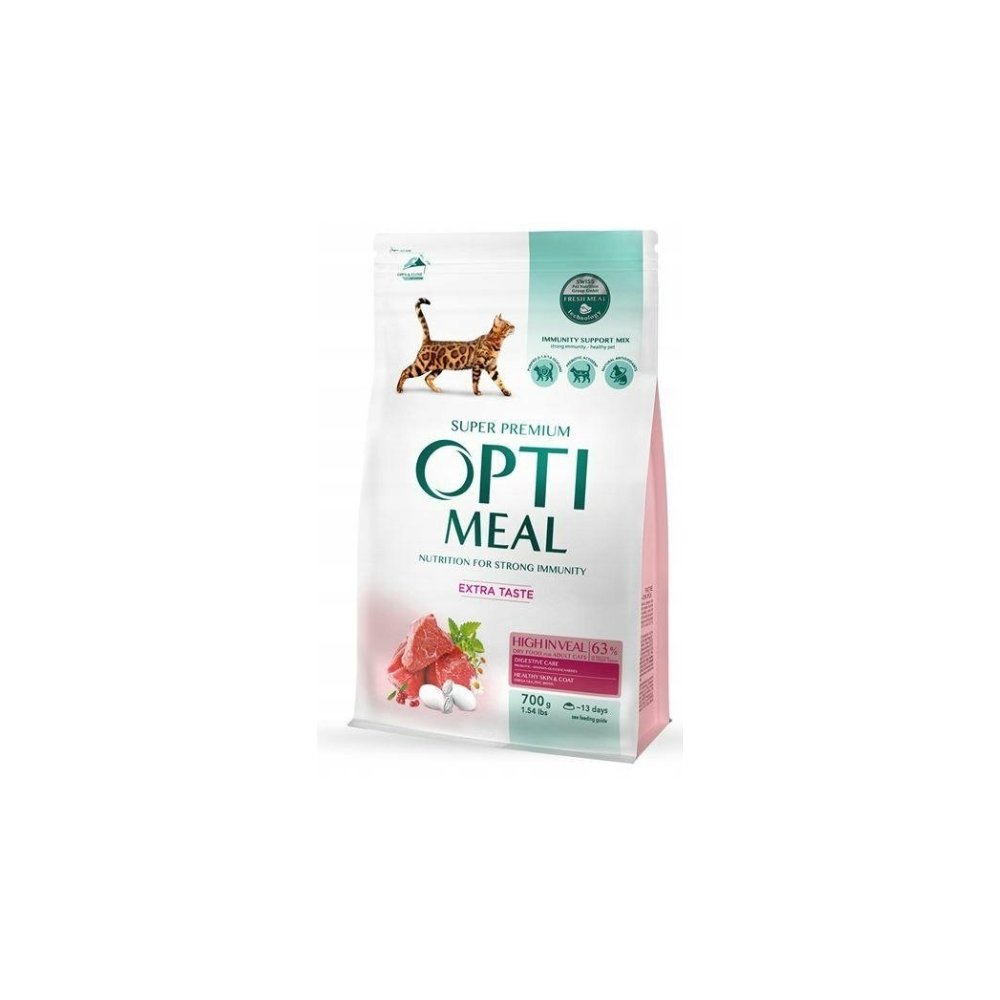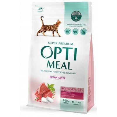Optimeal dla dorosłych kotów z cielęciną — super premiowa żywność dla dorosłych kotów, produkowana pod kontrolą lekarzy weterynarii. Wyjątkowa receptura dla zdrowia i urody zwierzęcia zawiera wyselekcjonowane mięsne składniki, przydatne zioła, jagody, naturalne przeciwutleniacze i prebiotyki.