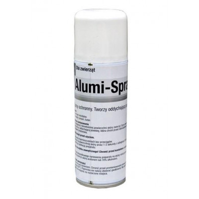 Aluminum koloidalne w sprayu do ochrony i pielęgnacji nieowłosionej powierzchni skóry zwierząt. Spray tworzy na skórze elastyczną i oddychającą powłokę, która chroni przed zabrudzeniem oraz szkodliwym wpływem środowiska.