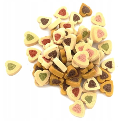 Serduszka Mix to mieszanka smakowitych kąsków o miękkiej strukturze i zachęcającym aromacie. Doskonale sprawdzą się podczas treningu oraz jako codzienna przekąska.
