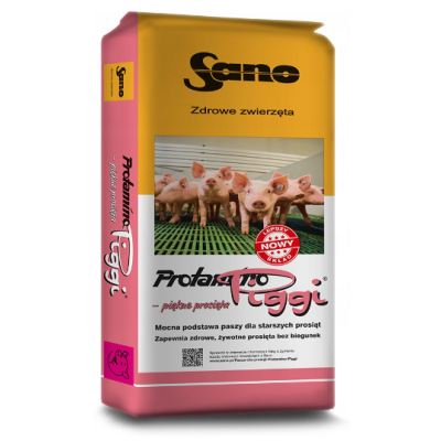 20 % Protamino Piggi + 80 % zboża (pszenica, jęczmień, kukurydza) + 5 kg SanoCid na tonę paszy. Stosować do 12 tygodnia życia, a następnie przejść na Protamino Premium Forte.