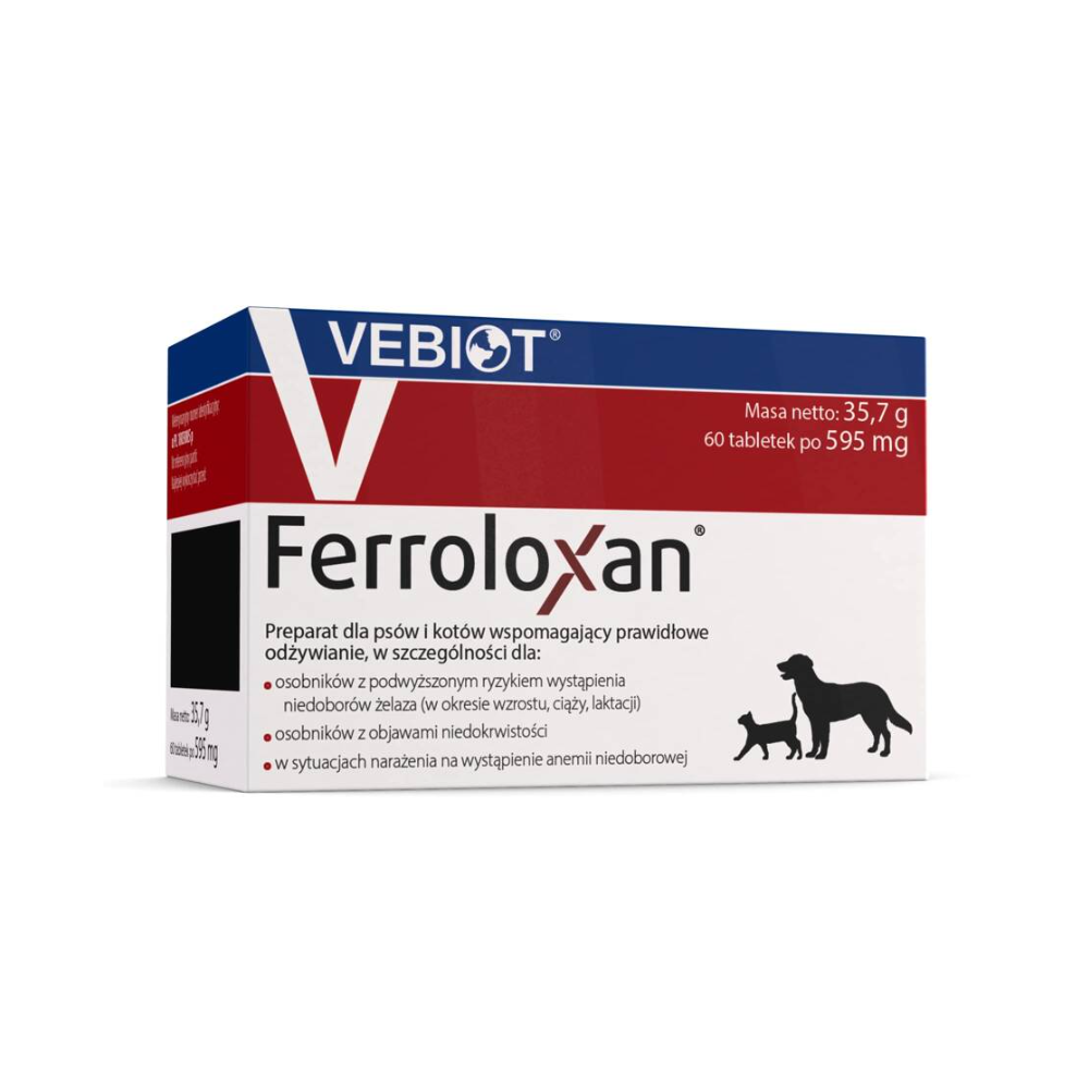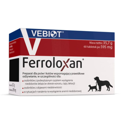 Ferroloxan to produkt przeznaczona do uzupełniania diety psów i kotów, a w szczególności dla osobników z podwyższonym ryzykiem wystąpienia niedoborów żelaza (okres wzrostu, ciąży, laktacji).