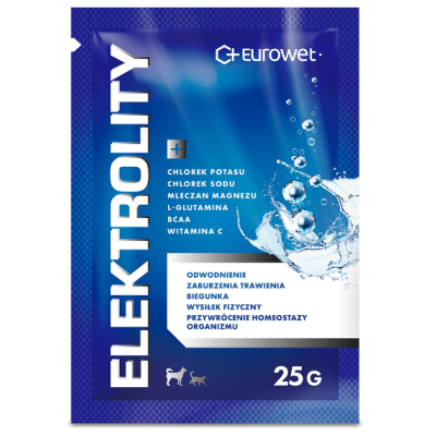 Karma uzupełniająca dla psów i kotów regulująca równowagę wodno – elektrolitową organizmu. Zmieszana z wodą tworzy roztwór izotoniczny.