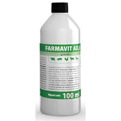 Farmavit AD3E podaje się w wodzie do picia przez 3-5 dni. Zalecane dawkowanie: